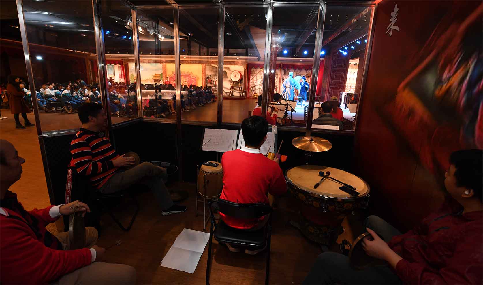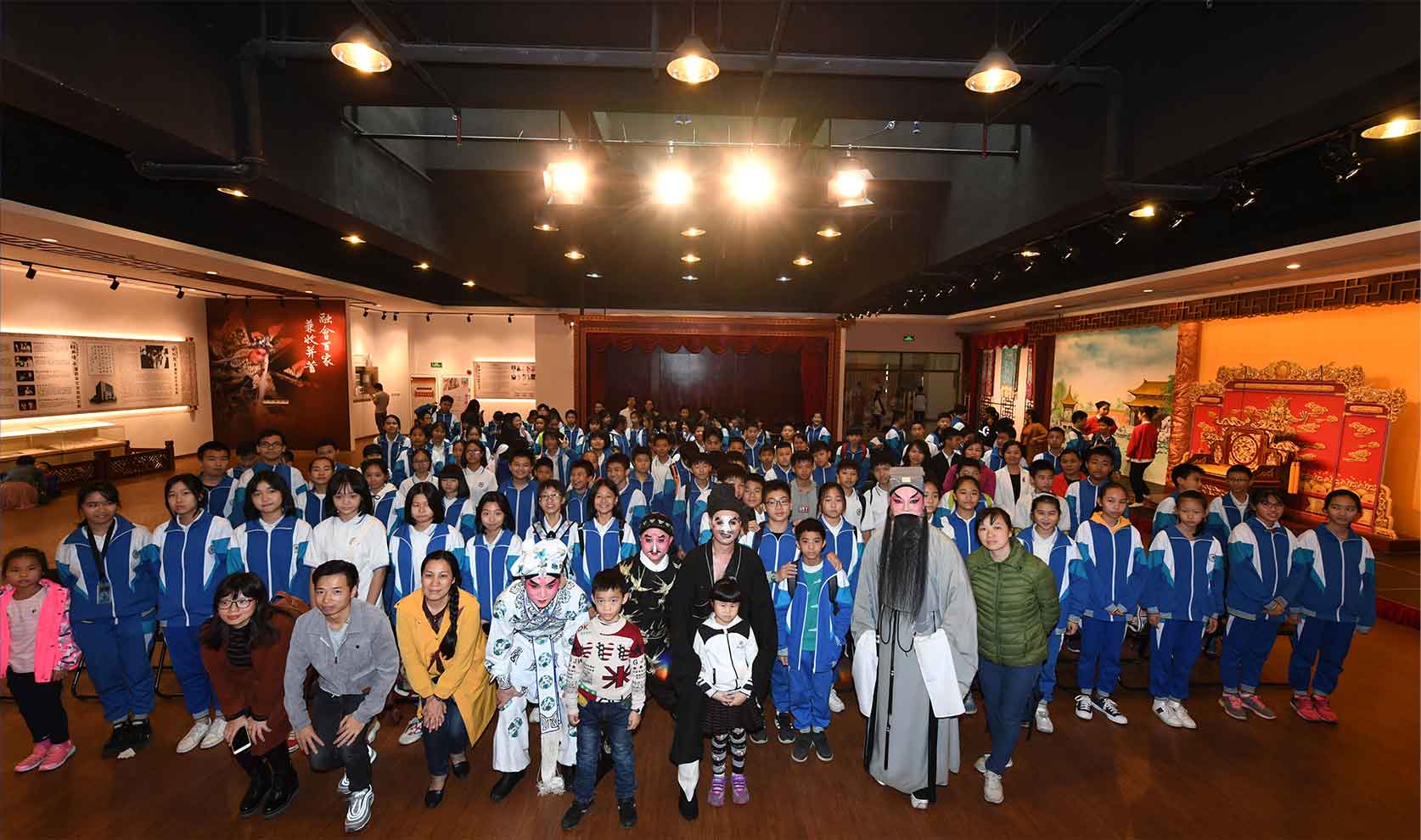 (1)“粤剧体验馆”。这个项目是我们2018年推出的“粤剧进校园”新模式,为达到最佳体验和文化传承效果,我们在自有演艺大楼内设计、打造了一个全新的粤剧体验空间,馆内设有电子多媒体互动区、粤剧历史与文物展示区、可演出的古戏台、化妆区、服装区、头饰展示区、道具体验区以及三个互动微缩小舞台等。经过2年的运行,这种模式越来越成熟,越来越受欢迎。每次演出,我们都会配备60人左右的演职人员阵容,让学生近距离地观察粤剧,了解演出的台前幕后,亲自体验粤剧演员的“台下十年功”,通过深入接触,加深他们对传统戏曲文化、戏曲精神的了解。