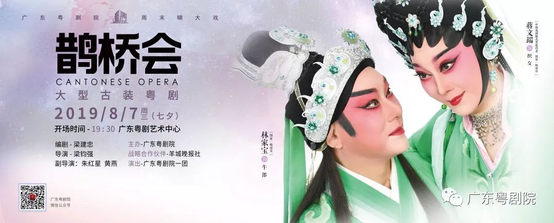 七夕佳期,由广东粤剧院国家一级演员、梅花奖得主蒋文端,国家一级演员林家宝主演的大型古装粤剧《鹊桥会》在广东粤剧艺术中心上演,与戏迷们共度七夕。很多情侣牵着手走进剧场,“应节”的演出一票难求,全场满座,满场的观众欣赏着“牛郎织女”的美丽爱情传说,现场洋溢着浪漫的气氛。