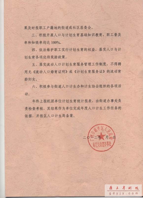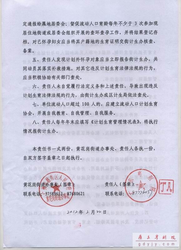 2月21日,黄花岗街道召开了“黄花岗街2012年人口计生工作会议”,对2011年计生工作做了总结。去年,黄花岗街道评出计生达标单位135个,并对其中45个表现突出单位进行了表彰。我院被授予“2011年机团单位人口计生工作先进单位”称号,这是我院全体职工共同努力的结果。会上,黄花岗街道还向辖区内机团单位下达了《2012年人口与计划生育工作目标管理任务书》、《流动人口计划生育齐抓共管责任书》。