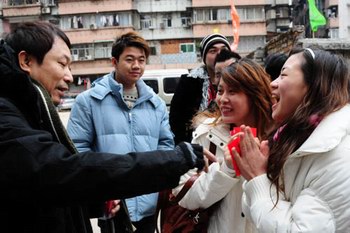 安哥派利是派到手软 院领导及后勤部室负责人为演出团鸣礼炮送行