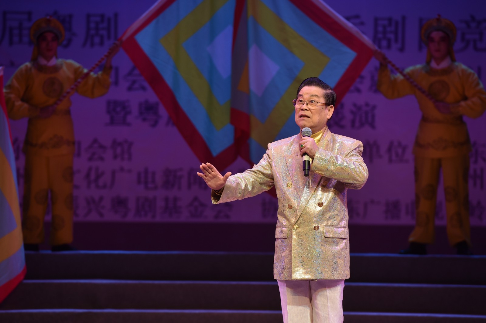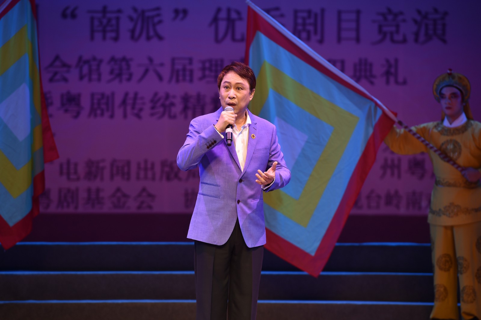 晚上举行的“广东八和会馆第六届理事会就职典礼”暨粤剧传统精粹展演晚会上,我院省级非遗传承小神鹰、梁耀安分别演唱《祖国颂》、《祭玉河》;中国戏剧梅花奖获得者、国家一级演员丁凡和曾小敏演唱了粤剧《柳毅传书》选段《花好月圆》,为晚会增添了喜庆色彩。