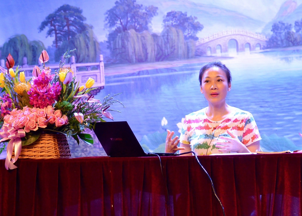 蒋文端以经典剧目《牡丹亭》中的杜丽娘、《三娘教子》中的王春娥、《打金枝》中的公主、《紫钗记》中的霍小玉、《白蛇传》中的白素贞为例,并配合现场锣鼓,示范不同性格、行当的出、入场表演手法,使听众有更直观的感受。