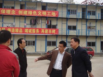 早上九点, 马副厅长,彭主任到达施工现场。他们会见了相关的负责人员与施工工人,肯定了他们的工作,鼓励他们在以后应再接再厉,并要求要“按时、按质、按量”完成施工任务。当他们见到工地的娱乐室时,马副厅长笑着说:“很好!就应该这样,以人为本,文明施工!”
