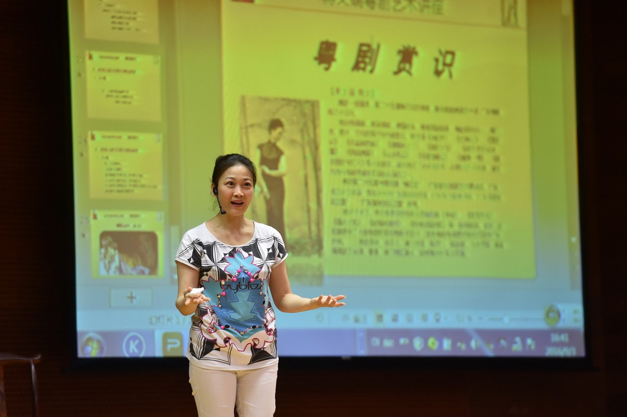 中国有数百个地方戏剧种,每个地方戏都有其特色。讲座中,蒋文端深入浅出地分析粤剧表演艺术的独特魅力。她的爱徒李嘉宜也到场助阵,李嘉宜示范虚拟表演程式时,蒋文端以通俗易懂的语言为听众解构虚拟表演的内容;蒋文端还以几个经典剧目的旦角为例,当场示范不同人物身份、性格以及不同行当的出、入场表演手法,蒋文端细腻表演赢得听众满堂喝彩,听众被这种特别的演讲方式深深吸引。