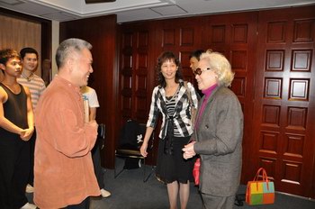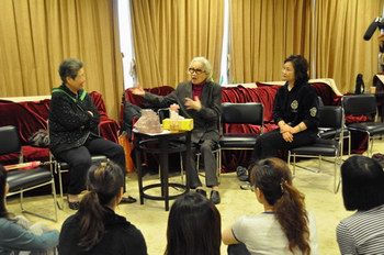 广东粤剧界表演艺术高级研修班(第二期)的课程已进行了一半。3月25日,红线女老师在广东粤剧院院长丁凡、副院长陈列东的陪同下,到高研班的课室“探班”,与老师们、同学们进行了亲切的交流。