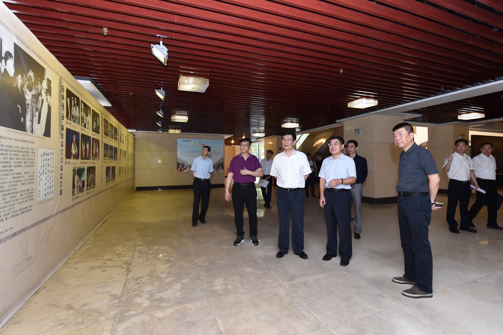 在广东粤剧艺术中心大堂,黄宁生一行参观了周恩来总理为我院的题词,并听取了剧院领导对粤剧院历史的介绍。随后在粤艺中心剧场内观看了我院青年演员的排练,黄宁生亲切地询问了我院艺术人员的情况,并对演员们勤学苦练及在台上展现的艺术水平给予了肯定。