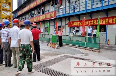 自2009年1月开工以来,广东粤剧艺术中心演艺大楼的建设正如火如荼进行。近日,为了提高全员的消防意识,确保施工现场防火安全,广东粤剧艺术中心演艺大楼项目指挥部与施工方(广州住建)、监理方(珠江监理)在施工现场联合举行了一场消防应急演练。