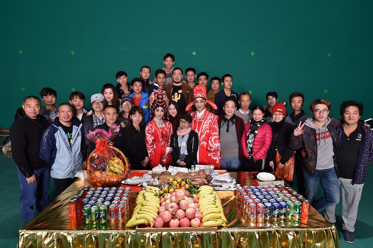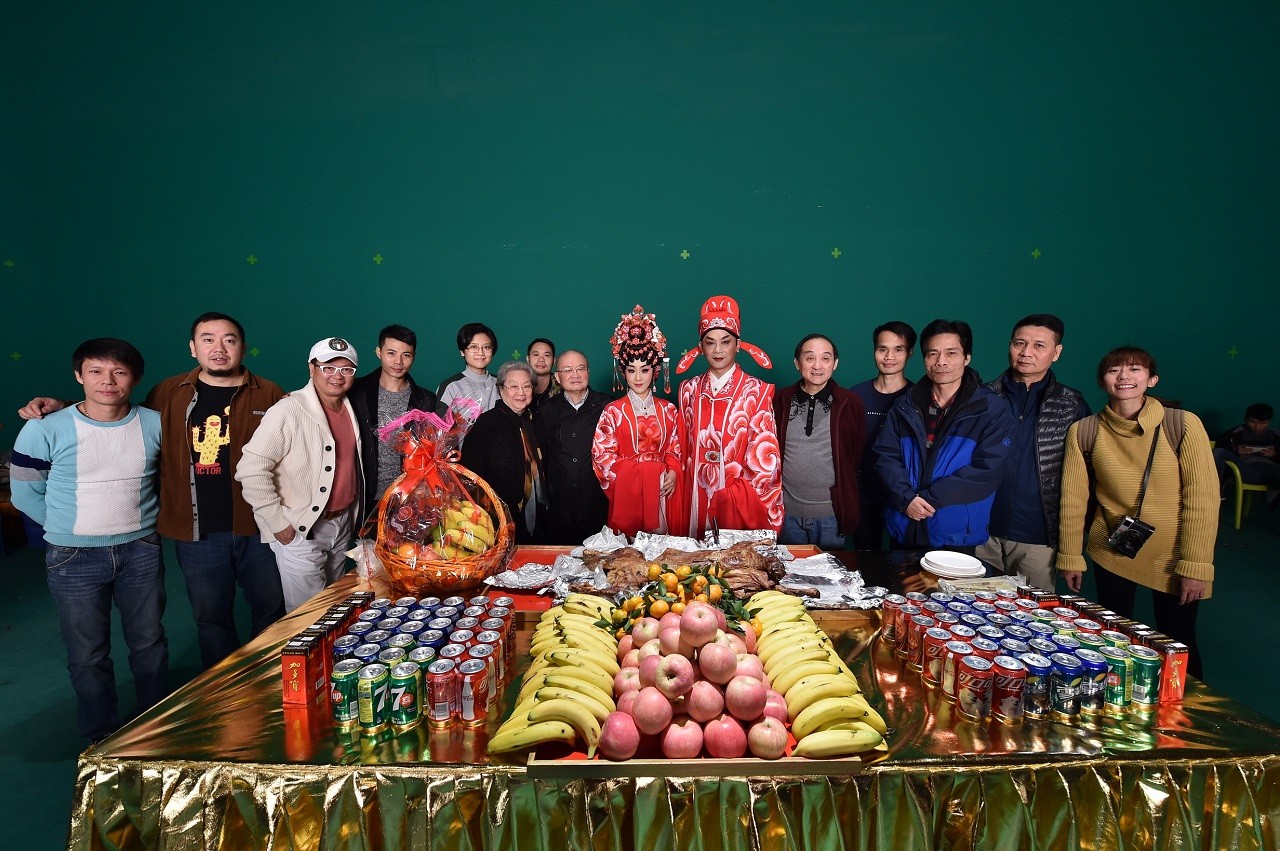 著名粤剧表演艺术家林小群(右三)、白超鸿(右二)到剧组探班