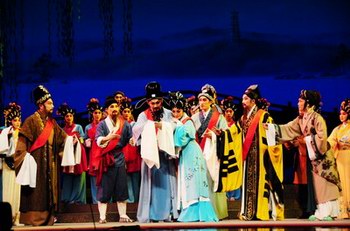 大型新编历史故事粤剧《东坡与朝云》昨天晚上在惠州市西湖大剧院隆重首演,广东省政协主席陈绍基,惠州市人大常委主任、市委书记黄业斌,惠州市市长李汝求等领导与1200多名观众一起出席观看了演出。据了解,为了让更多观众分享好戏,惠州电视台将当晚的演出实况作同步直播。