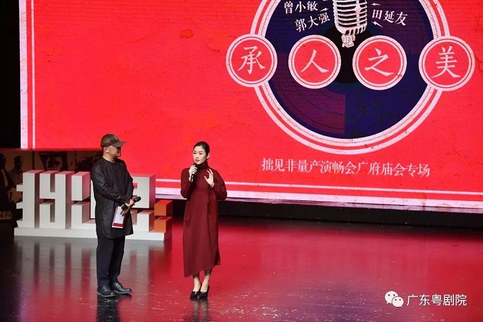 第九届广府庙会系列活动之“拙见·承人之美——广府庙会专场”今晚(2月22日)在天河正佳广场演艺剧场举行,我院国家一级演员、中国戏剧梅花奖、白玉兰戏剧表演奖主角奖获得者曾小敏应邀出席活动。曾小敏以“粤剧也可以很时尚”为题与主持人田延友展开对话,就粤剧的传承和发展、如何加强传统戏曲传播力度、戏曲电影的宣传推广以及粤剧的创新和保护等话题发表了自己的见解。曾小敏认为,粤剧是在创新中一路走来,粤剧人具有敢为人先的创新精神,让粤剧具有强大的生命力,具有深厚的群众基础。在热烈的掌声中,曾小敏应观众要求现场演唱了一曲《大美岭南粤韵飞》。