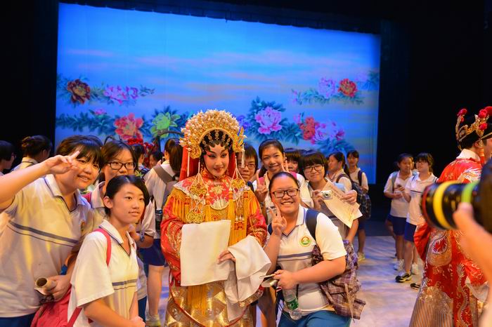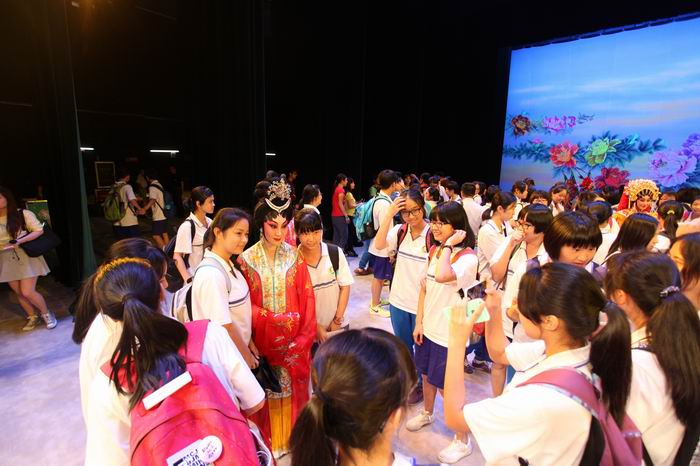 2015年6月5日下午,由广东省文化厅主办,广东省艺术研究所、广东粤剧院、广东广雅中学联合承办的“走进非遗·亲近粤剧——‘中国文化遗产日’系列活动之‘粤剧进校园’”活动于广东粤剧艺术中心剧场举行。广东省文化厅副厅长杨伟时、省文化厅副巡视员王莉、省文化厅非遗处处长杜绍勤,广东广雅中学副校长龙国华以及广东粤剧院领导班子,与广东广雅中学、暨南大学华文学院留学生近690名青年学子共同参加了此次活动。名院名校相对接,广东粤剧院以“请进来”的方式把学生请进剧场,近距离亲近粤剧。