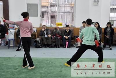随后,代表团观看了我院青年团《刘金定斩四门》的排练,皮埃尔夫妇对粤剧产生浓厚的兴趣,表示粤剧武打戏的场面安排十分精彩,音乐与演员表演的节奏配合非常微妙,作为广东传统地方文化,粤剧对于观众是具有浓厚的感染力。