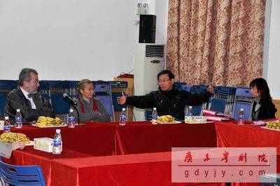 2009年11月16日,法国古福勒市市长皮埃尔·威尔迪埃夫妇领同代表团成员访问我院。该团此次访华主要目的是考察中国传统艺术,为2010年在法国举行的“中国民间传统艺术巡演”作准备。在此次活动中,我院院长丁凡,副院长陈列东向代表团介绍了广东传统艺术粤剧的发展过程与现今状况,展示了我院经典文戏、武戏代表作《唐梦香宫证前盟》与《武松大闹狮子楼》的精彩视频片段。
