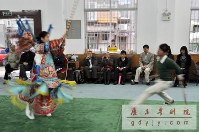 丁凡院长向代表团介绍粤剧的发展状况 代表团观看青年团排练