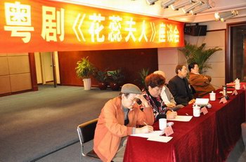 广东粤剧院领导层、《花蕊夫人》专家组和青年团主要演员出席了这次座谈会 《花蕊夫人》专家组在听取各方意见,进行笔录。