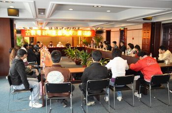 新版《花蕊夫人》的主演在认真听取老师们的建议 (丁凡院长作座谈会总结词。)