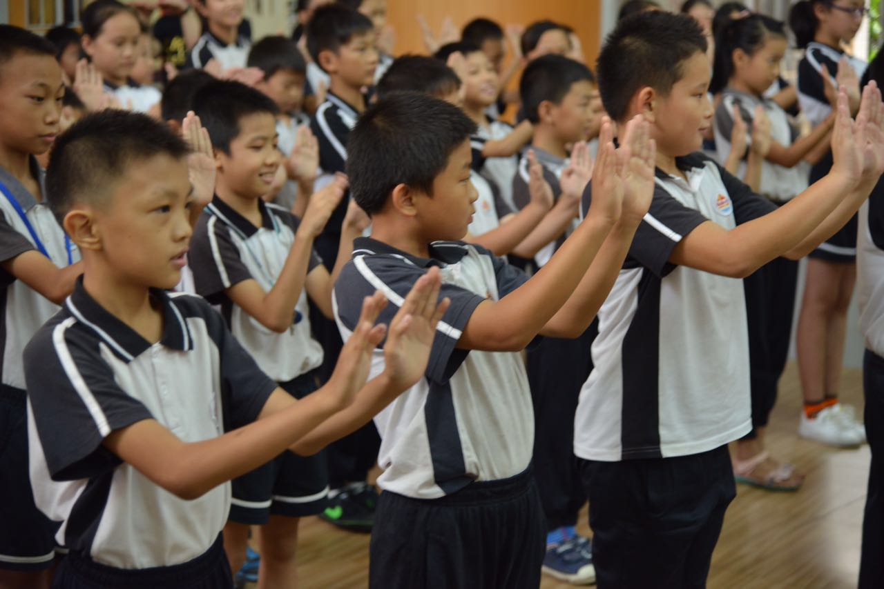 彭庆华从粤剧的历史开始介绍詠春的来源和发展,并通过幽默的语言讲述粤剧与詠春的关系。通过提问题、做示范、看不同类型的粤剧武打片段、教“开马”等环节引发学生的兴趣。其中,学生们最感兴趣的是学习“开马”,为了满足学生们的要求,有兴趣学的学生都上到舞台跟彭庆华学习。小男生们兴奋不已,姿势有模有样的,都当起了“小叶问”,过足瘾。 讲座也随着学习“开马”的欢声笑语结束。 通过举办这种类型的讲座,希望可以把“南国红豆”——粤剧带进校园,让小朋友们从小认识粤剧,关注传统的岭南文化。