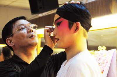 《紫钗记》剧照 丁凡院长亲自为第一次担纲长剧的许文杰化妆