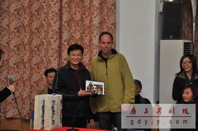 我院院长助理陈奔与香港演艺学院代表Michael交换纪念品 学生们在参观我院舞美制作车间