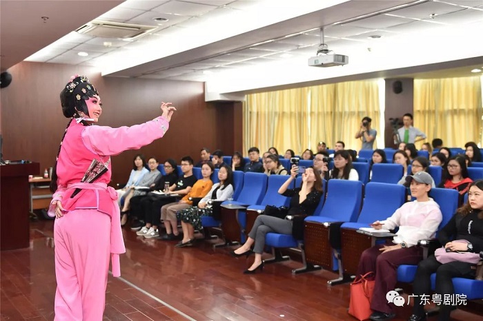 今天我院中国戏剧梅花奖得主、国家一级演员蒋文端受邀担任暨南大学华文学院汉语言专业商贸汉语方向本科必修课程“语言与商务调查实践——粤剧艺术文化的商务文创与翻译传播”讲席导师,为来自三十多个国家的留学生开展了《粤剧的“旦”》的主题讲座。