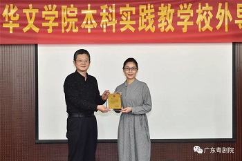 我院曾小敏、蒋文端、文汝清被暨南大学华文学院敦聘为本科实践教学校外导师,讲座前,该院副院长莫海斌为导师们颁发聘书。