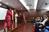 暨南大学华文学院副教授李丹丹告诉我们:“今年我们将粤剧艺术文化作为课程的研究对象。目标之一是让留学生通过粤剧名家所展示的粤剧艺术文化,来了解中国优秀传统文化。目标之二是让留学生通过粤剧行当、粤剧经典剧目的介绍进行中外翻译来提高语言实践能力。三是让学生对粤剧进行商务文创设计来提高商务实践能力。”