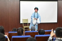 蒋文端带着我院的优秀青年演员们多维度地向留学生们展示旦角的魅力。按照年龄分类从天真活泼的“小旦”;未出阁的大家闺秀“闺门旦”;端庄稳重的中年妇女“青衣”;年迈的妇人“老旦”,还有扮演滑稽或奸刁的女性人物“彩旦”;江湖女侠、身怀绝技的“武旦”;能唱能打的女元帅或女将“刀马旦”。