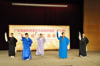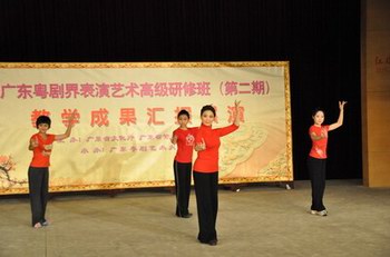 “广东粤剧界表演艺术高级研修班”(第二期)于3月18日开学,经过十多天的学习,在即将圆满结束之际,今日(3月29日)举行了教学成果汇报展演,展示本期“高研班”的学习成果。省文化厅厅长方健宏、广东省政协副秘书长邵忠、以及粤剧大师红线女、著名粤剧表演艺术家陈小汉等领导和嘉宾出席观看了展演。