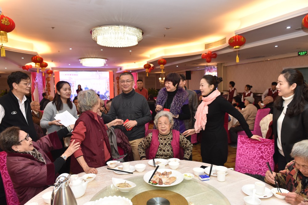 欢声笑语辞旧岁,金鸡报晓迎新春!2017年元月20日中午,在新春佳节来临之际,“广东粤剧院2017年迎春敬老宴会”在东山宾馆温馨举行。一年一度的迎春敬老宴会是前辈们最期待的相聚,他们依然和往年一样,早早到达宴会。前辈们精神矍铄,谈笑风生,一张张笑脸更显神采飞扬,宴会一片喜气洋洋。宴会上,我们通过视频一起回顾了广东粤剧院在2016年艺术生产所获得的佳绩。丁凡院长带领着院领导班子向前辈们送上真挚的祝福,随后向80岁以上的老福星派发敬老利是。随着一阵阵祝福声,欢笑声,温馨的迎春敬老宴会来到了尾声,前辈们领取了意喻丰收富足的大米,欢欣地向彼此告别。