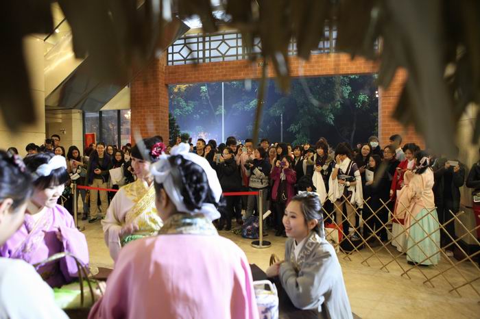 舞台之外,所谓“无茶馆,不剑三”,主创们特意将“茶馆”这个《剑网3》中极具标志性的符号设置在剧场大堂,一众茶馆NPC(非玩家角色)在舞台演出开场前与观众们零距离接触,让众多网游玩家踏进剧场就身临其境。