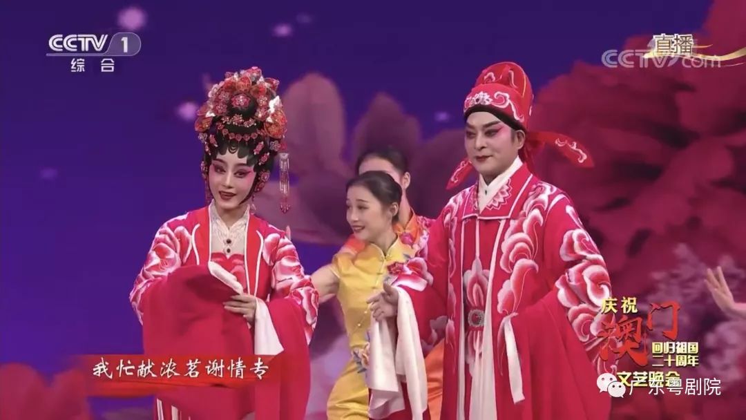 在文艺晚会上,广东粤剧院国家一级演员、文华表演奖、梅花奖获得者曾小敏,广州粤剧院国家一级演员、二度梅花奖获得者、国家级非遗传承人欧凯明与澳门粤剧爱好者一起演唱了一曲《花好月圆》,为庆澳门回归晚会增光添彩。