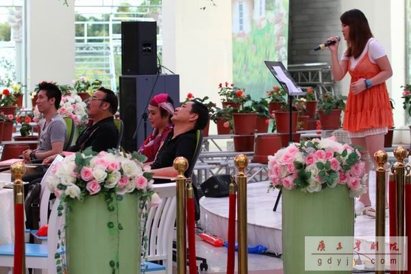 活动第二站是南沙百万葵园。令人眼前一亮的鲜花餐厅,绚烂的舞台上,激动人心的“中国好声音——粤剧院篇”正如火如荼的开展着,卢海潮、梁淑卿、林家宝、彭庆华四位重量级导师拿着“I want You”的牌子,正在积极争夺优秀学员,十二位选手的动情演绎,一次又一次在全场掀起片片欢呼。经过了三轮激烈的比拼,最终吴晓雯脱颖而出,成为我们粤剧院的好声音冠军。在比赛的过程中,我们还专门对最新出炉的获得“中国跟斗王”之称的我院二团演员陈华生进行了嘉奖,他的刻苦练功精神值得我们全体去学习。