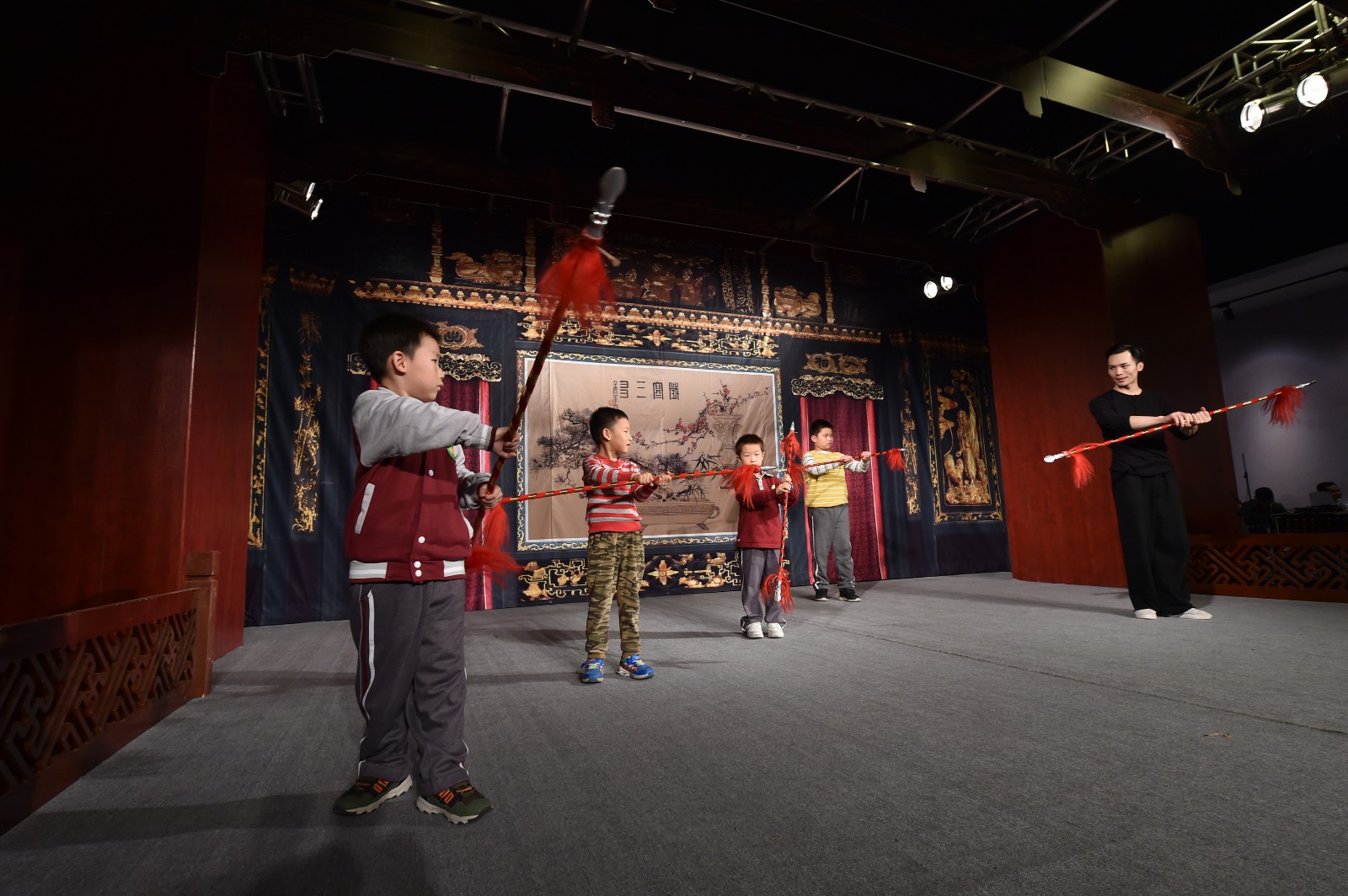 下午一点半,节目开始,广东粤剧院的专业演员为小朋友们带来了《十五贯之“访鼠”》、《贵妃醉酒》和《帝女花之“香夭”》等在粤剧折子戏,期间还穿插请小朋友上台互动,学学耍水袖和把子功。活动结束了,孩子们还依依不舍不肯走,还要再次敲敲战鼓,玩玩刀枪。有学生家长说,这个粤剧文化体验馆则重的体验模式,打破了剧场的隔阂,让孩子们看得见摸得着,近距离体验了解粤剧文化,比起在坐在剧场看戏亲切多了,容易引起他们的兴趣。广东粤剧院党委书记、副院长曾小敏参与了今天的活动,她表示,孩子对传统文化的认知是需要引导的,通过这种体验粤剧的方式,可以培养孩子们对粤剧的兴趣,让粤剧在小朋友心中种下一颗种子,从而提升他们的文化自信。 “粤剧文化体验馆”是公益性场馆,暂定每周六下午两点向公众开放。“粤剧文化体验馆”主要功能是粤剧文化的体验,以展演、互动体验为主,兼备娱乐性、观赏性、知识性和趣味性,适合不同年龄段的观众参观体验,在展览方面,则以现代多媒体技术与粤剧传统艺术元素相结合,展示粤剧的基础知识、广东粤剧院发展历程以及珍贵的粤剧历史文物。体验馆可容纳100名观众,正中有个古色古香的仿古戏台,可以进行演出;舞台的左侧是开放式的化妆间,可以零距离了解演员化妆过程;舞台的右侧是开放式的乐队“棚面”让观众对粤剧乐队的配置和伴奏一目了然;现场左边有三个分别是“花园”、“皇宫”和“沙场”的微缩舞台场景,这是广东粤剧院舞美设计师全手工、按比例制作的,场景上面有凳子,有龙椅,还有刀枪剑戟等道具可以亲自体验;右边是粤剧基础知识和广东粤剧院发展史的展览区,内容很丰富,展柜里还有一些非常珍贵的粤剧历史文物,例如首任广东粤剧院院长马师曾的“院长任命书”原件,马师曾1962年写给时任广东省委书记陶铸的亲笔信等等,这些史料都是第一次向公众展示。 <span font-size:14px;background-color:#ffffff;"="" style="color: rgb(51, 51, 51);">广东粤剧院副院长陈奔说:“我们设立这个体验馆的初衷,是为了让参观者对粤剧有一个直接体验的场所,也就是要在‘体验’两个字上做文章,这也是我们广东粤剧院的强项,现在的‘博物馆’都是以参观为主的,我们的体验馆可以填补这方面的空白。