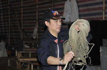 表演结束后,演员们都十分兴奋,清姐大声说:“我们今年的春班成功结束啦!最后大家辛苦点,一起帮忙拆台,一起去吃宵夜,一起去庆祝吧!”演员们齐声响应。安哥在卸妆后,马上帮忙拆台、收绳。他绑绳动作的熟练和快速吸引了大家的眼球,每绑好一捆绳,大家都发出声声赞叹。清姐这时开玩笑说:“你们要看清楚啦,要做文武生首先要学会绑绳!”在清姐的指挥与演职员工的配合下,不到二十分钟,舞台就已经拆卸完毕,齐齐出发去吃宵夜。宵夜时,清姐与大家齐齐举杯,同庆这次春班长征完满结束!回程时,清姐说:“终于结束了,其实春班连续的演出是非常辛苦的,再加上天气的寒冷。幸好我们团的团风是淳朴的,团员们都很齐心。我们心中都有一份坚持,是团结让我们完成这个艰巨的任务。”