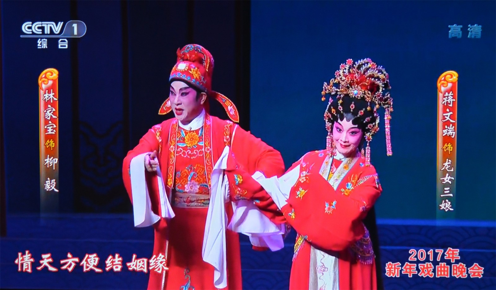 “2017年新年戏曲晚会”于12月30 日晚在北京国家大剧院举行,我省选送的、由广东粤剧院一级演员蒋文端和林家宝主演的粤剧《柳毅传书》之“花好月圆”片段代表广东粤剧在晚会上亮相。习近平总书记等党和国家领导人与首都近千名群众一起观看演出,喜迎新年的到来。